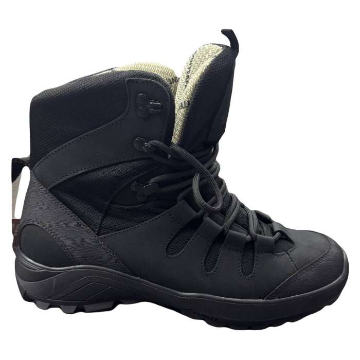 Верх: Гідрофобний нубук. Посилена п’ята та носок прорезиненим матеріалом - байкаст.Байкаст - це антивандальна шкіра, яка укріплює задник і носок. Кордура 1000D, зимова мембрана vinterfrost. Підошва ТЕП. Підкладка текстиль з поролоном. З’ємна формована, швидкосохнуюча ЕВА-устілка. ПУ підошва – дуже легка та гнучка.