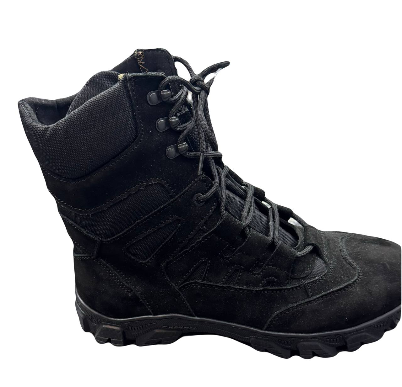 Матеріал - натуральний нубук шкіра, вставки - вологостійка кордура; всередині утеплювач Gore-tex (зима), язик прошитий доверху; підошва проклеєна та прикріплена вакуумно-термічним методом.