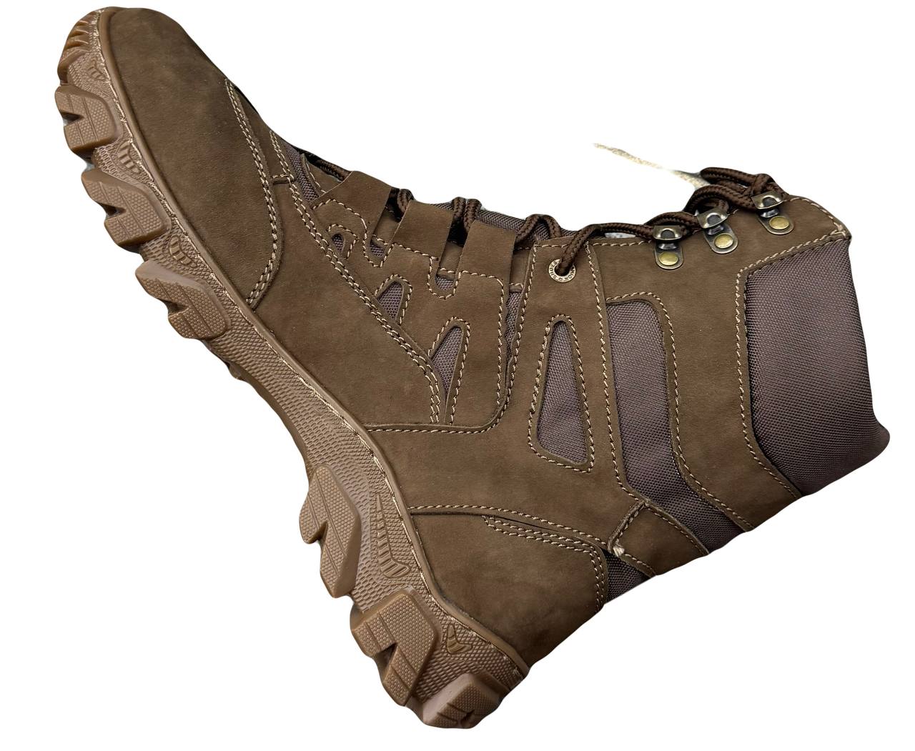 Матеріал - натуральна лицьова шкіра, вставки - вологостійка кордура; всередині утеплювач Gore-tex (зима), язик прошитий доверху; підошва проклеєна та прикріплена вакуумно-термічним методом.