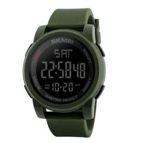 Характеристики: механізм: кварцовий; тип циферблата: стрілочно-електронний; тип кріплення: ремінець; функції: будильник, секундомір; скло: полікарбонатне; формат часу: 12/24 год; особливості: водонепроникний корпус, секундна стрілка, індикація місяця, дня тижня, дати, підсвічування; форма корпусу: кругла; матеріал корпусу: полікарбонат; водонепроникність: 50 м; матеріал ремінця / браслета: каучук; розміри корпусу (ВхШ): 52 х 16; діаметр корпусу: 52 мм. ; вага: 60 г. Годинник Skmei 1155 - годинник розроблено для екстремальних умов таких як, наприклад, занурення під воду до 3-х метрів і дуже низькі температури до -35 градусів за Цельсієм. Якісні протиударні матеріали захистять механізм пристрою від пошкоджень, водонепроникність дасть змогу не знімати годинник, навіть якщо ви потрапили під дощ або плаваєте. Керування всіма функціями здійснюється натисканням декількох кнопок, ви без зусиль запустите таймер або секундомір навіть під час бігу.
