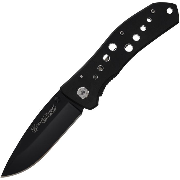 11,43 см у закритому стані. 8,89 см лезо з нержавіючої сталі чорного кольору. Чорна алюмінієва ручка. Шпилька для великого пальця. Отвір для ремінця. Кліпса для кишені.