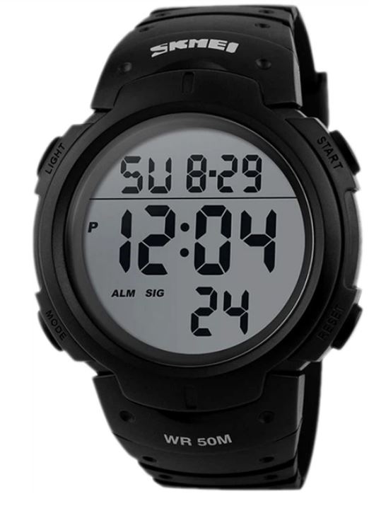 Годинник Skmei 1068BK black - це електронний годинник з круглим корпусом і ремінцем з каучуку чорного кольору. Циферблат - електронний, оснащений електролюмінесцентним підсвічуванням. Цей годинник має кілька функцій, включаючи будильник, секундомір, другий часовий пояс, відображення дати, року і дня тижня. Формат часу може бути вибраний у 12- або 24-годинному форматі. Скло годинникового механізму виконане з полімеру, що робить його досить міцним та довговічним. Корпус годинника також виготовлений з полімеру чорного кольору, має діаметр 47 мм. Також годинник має водонепроникність до 50 метрів, що дозволяє використовувати його під час плавання та підводного плавання. Годинник постачається з батарейкою CR2025, він важить всього 45 грамів. Комплектація включає пакет для транспортування та інструкцію з використання