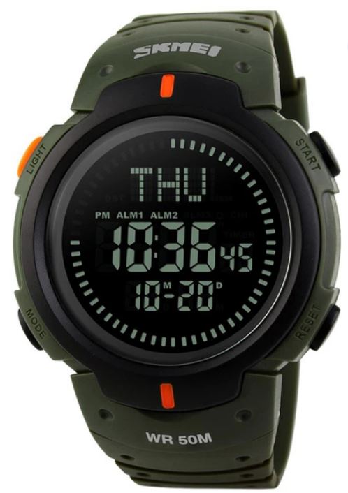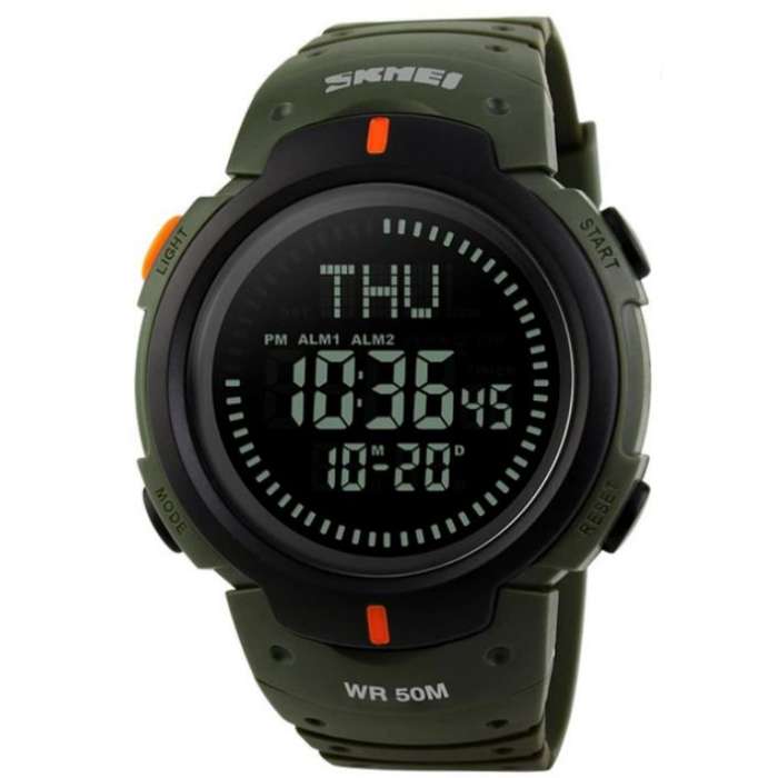 Годинник Skmei 1231AG Army Green — це стильна та функціональна модель у військовому дизайні. Його практичність, надійність і сучасний вигляд роблять його ідеальним супутником як у спорті, так і в повсякденному використанні. Годинник оснащений електронним механізмом, що гарантує точність показників і простоту у користуванні. На цифровому дисплеї відображаються години, хвилини, секунди, дата, день тижня, місяць і рік. Модель має широкий набір функцій: компас, секундомір, таймер, будильник, світовий час і електролюмінесцентне підсвічування, що забезпечує зручність навіть у темряві. Формат часу можна вибрати — 12 або 24 години. Корпус годинника виготовлений із міцного полімеру армійсько-зеленого кольору, стійкого до ударів і подряпин. Полімерне скло надійно захищає екран від механічних пошкоджень. Ергономічний ремінець із каучуку також виконаний у болотному кольорі, приємний на дотик і забезпечує комфортне носіння навіть під час тривалих тренувань чи походів. Діаметр корпусу становить 47 мм, вага — лише 60 г, завдяки чому годинник зручно сидить на зап’ясті, не створюючи відчуття тяжкості. Водонепроникність 5 ATM (50 метрів) дозволяє користуватись ним під час плавання, занять спортом або в дощову погоду. Годинник постачається з батарейкою CR2025, інструкцією та транспортувальним пакетом.