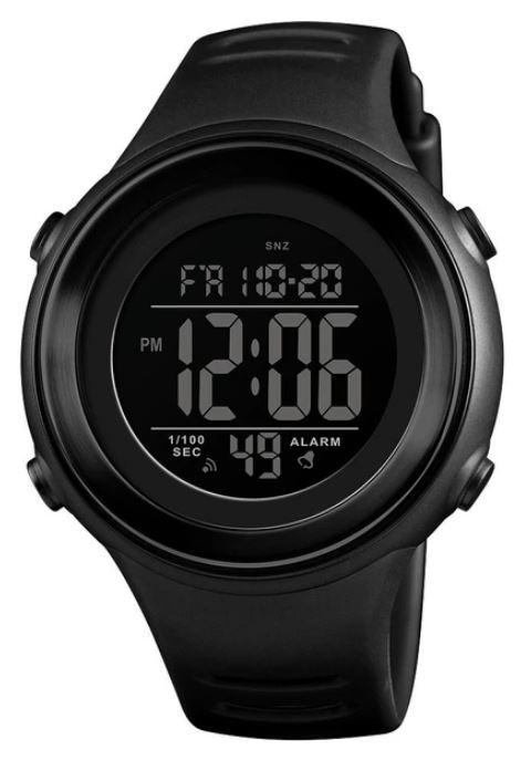 Сучасний годинник SKMEI 1394 - це практичний та міцний аксесуар, який ідеально підходить для повсякденного використання. Чорний корпус із міцного матеріалу стійкий до пошкоджень, на ньому не залишиться потертостей або подряпин, при акуратному використанні він зберігає свій зовнішній вигляд довгий час. Годинник водонепроникний, тому ви можете без побоювання носити його за будь-якої погоди і не знімати ні коли приймаєте душ, ні коли миєте руки. Корпус, з поєднання ABS пластику та поліуретану, підвищує міцність аксесуара, а також надійно захищає механізм від пошкоджень у разі падіння або удару. Матеріал, який захищає циферблат, не помутніє і не потемніє навіть після декількох років використання. Характеристики: Водонепроникність: 5 АТМ; Джерело живлення: Батарейка. Розмір: Діаметр циферблату: 47 мм; Товщина корпусу: 14 мм; Ширина ремінця: 22 мм; Довжина ремінця: 250 мм. Функції: 2 часи, секундомір, таймер, режим 12/24, відображення дати та дня тижня, будильник, підсвічування.