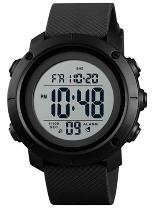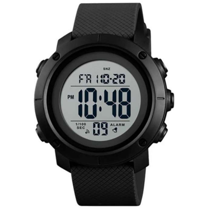 Skmei 1426BKWT– це електронний чоловічий годинник від виробника Skmei, який ідеально підходить для активного способу життя. Годинник має полімерний корпус чорного кольору, який є стійким до пошкоджень. Круглий циферблат також виконаний у чорному кольорі з білими цифрами та стрілками. Ремінець виконаний з каучуку в чорному кольорі, що надає годиннику спортивного вигляду. Циферблат оснащений функцією другого часового поясу, а також показує рік, дату, день тижня та місяць. Додаткові функції включають секундомір, будильник і електролюмінесцентне підсвічування. Годинник оснащений полімерним склом, яке має високий ступінь міцності та захищає циферблат від пошкоджень. Формат часу може бути налаштований на 12 чи 24 години. Водонепроникність годинника становить 50 метрів, що дозволяє використовувати його під час плавання, але не під час дайвінгу. Вага годинника становить 46 грамів, що робить його легким та зручним для носіння. Годинник поставляється разом з транспортувальним пакетом та інструкцією, а для його живлення потрібна батарейка CR2025.