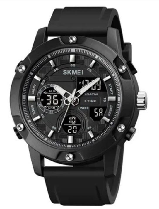 Корпус моделі SKMEI 1757 виконаний із нержавіючої сталі. Завдяки своїм властивостям цей матеріал довговічний і успішно протистоїть зносу, навіть за найактивнішого використання. Водостійкість 5 АТМ, витримують навантаження та занурення у воду до 3-х метрів. Ремінець виконаний з каучуку. Оснащений класичною застібкою. У годиннику, крім ключової функції показу часу, є безліч додаткових: 2 будильники, підсвічування, секундомір, таймер, дата, подвійний час. Підсвічування особливо корисне при використанні годинника при будь-якому освітленні і в будь-який час дня. Розміри: Діаметр(мм): 48 мм; Товщина(мм): 16 мм; Ширина ремінця(мм): 24 мм; Загальна довжина(мм): 250 мм.