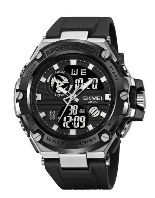 Чоловічий кварцовий наручний годинник Skmei 2119SI з підсвічуванням є стильним і функціональним аксесуаром, що підходить для повсякденного носіння та активного способу життя. Цей годинник відрізняється своїм елегантним і сучасним дизайном, який робить його універсальними і легко поєднуються з різними стилями одягу. Годинник оснащений точним кварцовим механізмом, що гарантує їх надійність та точність у показаннях часу. Підсвічування дозволяє легко зчитувати час за умов недостатньої освітленості, забезпечуючи зручність у час доби. Міцний корпус та ремінець гарантують довговічність та захист від механічних пошкоджень, що робить цю модель ідеальним вибором для чоловіків, які цінують стиль та практичність у своїх аксесуарах. Особливості: кварцовий механізм забезпечує точність та надійність у роботі, мінімізуючи необхідність у частій заміні батареї; підсвічування дозволяє легко зчитувати час у темряві або умовах низького освітлення, що зручно у вечірній час або у приміщеннях з тьмяним освітленням; виготовлені з високоякісних матеріалів, що забезпечує довговічність та стійкість до механічних пошкоджень; ергономічний дизайн ремінця гарантує комфорт при тривалому носінні; водонепроникність забезпечує захист від випадкових бризок і невеликих контактів з водою, що робить годинник придатним для повсякденного використання; функції: 2 часових пояси, хронограф, перемикання формату часу 12/24 години, дата, день тижня, LED-підсвічування, будильник. Характеристики: діаметр корпусу: 5.6 см; розміри корпусу: 5.6 х 5.9 см; товщина корпусу: 1.7 см; ширина браслета: 2.6 см; довжина ремінця: 26.5 см; колір: чорний із сріблястим; вага: 93.6 г.