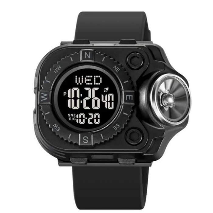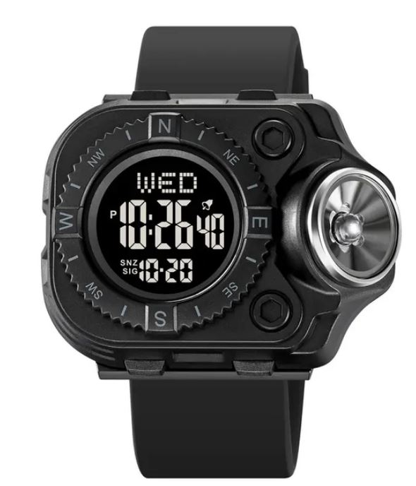 Цей годинник поєднує в собі мужній мілітарі/тактичний дизайн з передовою технологією, пропонуючи вам не тільки точне вимірювання часу, але й додаткову функцію - вбудований ліхтарик прямо в корпусі годинника. Необмежені можливості в будь-яких умовах - ось що робить цей годинник незамінним аксесуаром для активного способу життя. Ліхтар, вбудований у корпус, забезпечує освітлення у темний час доби або у важкодоступних місцях, надаючи вам впевненості та комфорту в будь-яких ситуаціях. Вишуканий чоловічий дизайн з мілітарі/тактичними елементами підкреслює вашу силу та рішучість, роблячи цей годинник невід'ємною частиною вашого стилю. Електронний механізм годинника гарантує точність відображення часу протягом усього періоду експлуатації, а японський механізм забезпечить тривалу роботу. Корпус моделі Skmei 2187 виконаний із гіпоалергенного пластику. Завдяки своїм властивостям цей матеріал довговічний і успішно протистоїть зносу, навіть за найактивнішого використання. Спеціальні матеріали та нержавіюча сталь, з яких виконаний годинник, є відмінним захистом від вологи. Клас водозахисту 3 АТМ. Браслет виготовлений із гіпоалергенного поліуретану та надійно фіксується на зап'ястя. А завдяки широкому діапазону регулювань браслета використання годинника стає дуже комфортним. Класичний подвійний замок-пряжка з металевою застібкою Tang Buckle із нержавіючої сталі надійно утримує браслет на зап'ясті та оберігає від випадкового розстібання. Світлодіодне підсвічування дозволяє дізнатися час навіть у повній темряві.