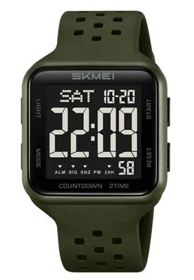 Представляємо годинник 2440AG , який поєднує стильний квадратний дизайн із практичною функціональністю. Цей годинник виготовлений у зеленому кольорі та має компактний квадратний корпус діаметром 38 мм, що робить його зручним та елегантним вибором. В годиннику чіткий цифровий дисплей зі світлою підсвіткою та темними цифрами, що забезпечує оптимальну контрастність для швидкого та легкого зчитування часу та даних за будь-яких умов освітлення. Годинник оснащений розширеними функціями, включаючи таймер зворотнього відліку та два часові пояси. Корпус виготовлений з міцного матеріалу ABS, а ремінець - з гнучкого поліуретану.