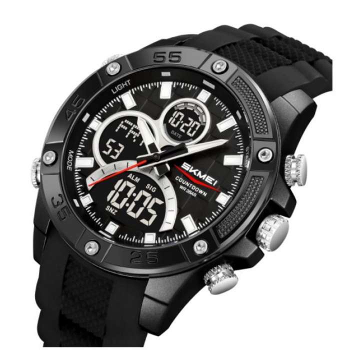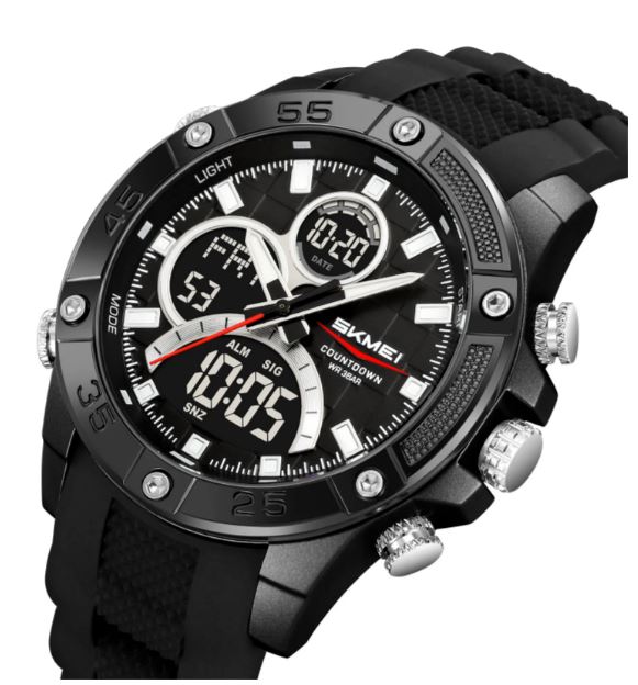 Пропонуємо вам стильний і функціональний наручний годинник Skmei 2476BK- ідеальний вибір для активних чоловіків, які цінують спорт і пригоди! Цей годинник поєднує в собі аналогове та цифрове відображення часу, що забезпечує максимальну зручність у використанні та чіткість інформації. Спортивний стиль годинника підкреслює їх динамічну природу, а кругла форма і чорний корпус, виконаний з високоякісного пластику, надають їм сучасного вигляду. Широкий ремінець із силікону забезпечить комфортне носіння, ідеально підійшовши для занять спортом або повсякденного носіння. Годинник Skmei 2476BK оснащений безліччю корисних функцій: яскраве підсвічування дозволить вам легко дізнатися час у темряві, а будильник, календар, секундомір та таймер допоможуть організувати ваш день.Клас водонепроникності 5 Bar дозволяє не турбуватися про годинник під час дощу або водних процедур.