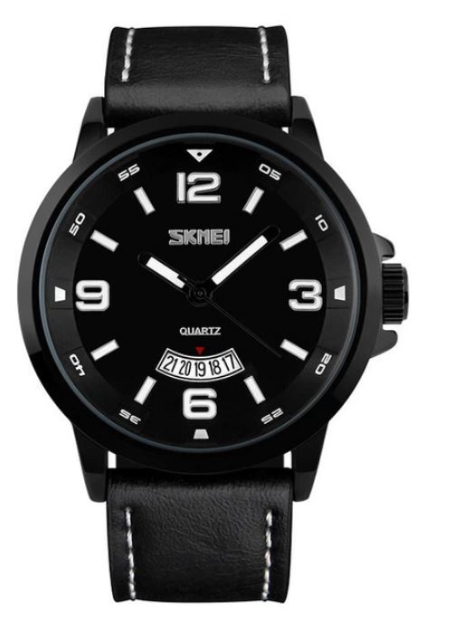 Міцне мінеральне скло, з якого виготовлений захисний екран, успішно протистоїть подряпинам та механічним пошкодженням. Завдяки цинковому напиленню корпус SKMEI 9115BKBK захищений від корозії та механічних пошкоджень. Це підвищує зносостійкість та довговічність аксесуара. При акуратному використанні годинник довгі роки збереже свій зовнішній вигляд. Спеціальні матеріали, з яких виконаний годинник, є відмінним захистом від вологи. Задня кришка циферблата з нержавіючої сталі надійно захищає механізм. Класичний ремінець із замком-пряжкою та металевою застібкою Tang Buckle зі сталі надійно утримує браслет на зап'ясті та оберігає від випадкового розстібування. М'яка та приємна на дотик еко-шкіра не тільки гармонійно доповнює дизайн моделі, але й забезпечує винятково зручне носіння та надійну фіксацію годинника на руці. Габаритні розміри: довжина-53 мм; ширина-48 мм; висота-11 мм.