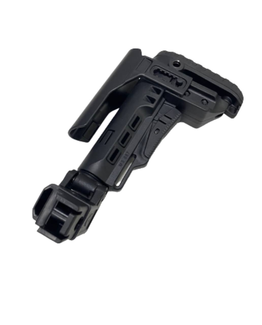 Приклад (база) DLG-087\052 для гвинтівок з трубкою розміру Mil-Spec з високим підщочником 4 см, антабка на 2 боки. це змінний складаний приклад для гвинтівок, що використовують подовжувальні трубки ствольної коробки Mil-Spec. елегантний дизайн з петльовим підставою QD. призначений для легких і швидких дій. Зручний вбудований гумовий потиличник зменшує віддачу і забезпечує надійне прилягання до плеча, запобігаючи зісковзуванню навіть із бронежилетом або модульним спорядженням. Унікальний механізм засувки, перше клацання для втягування та друге клацання для демонтажу. Унікальна конструкція створює фрикційну посадку, яка запобігає небажаному руху буферної трубки. Довга щічна надставка дає змогу отримати правильний щічний шов для піднятих прицілів або гвинтівок із піднятими напрямними. Натисніть кнопки з обох боків одночасно, щоб перемістити його вгору. Просто натисніть його вниз, не натискаючи кнопки, щоб налаштувати висоту. Підставка під щоку забезпечує підйом до 4 см по вертикалі. У висунутому стані ручка заряджання не торкається стояка. Характеристики: Вага: 405 г Ширина: 63 мм Висота: 131 мм Довжина: 200 мм. Підходить для моделей АК-47, АК-74, АКМ, AR-15, M4, M16.