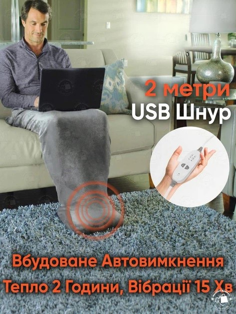 Массажное одеяло с подогревом 3 режима, 111,5 х 70 х 32 см + пульт. Это инновационное устройство сочетает в себе функции уютного пледа, электрической грелки и массажера. Внутренняя часть выполнена из супермягкой шерпы (искусственной овчины), которая прекрасно удерживает тепло, а внешняя сторона – из вельветового плюша. Устройство работает от USB, что позволяет использовать его от повербанка, ноутбука или адаптера питания в любом удобном месте. Тип: Электрическая грелка-сапог для ног с массажем. Размеры (ДхШхГ): 111.5 х 70 х 32 см.