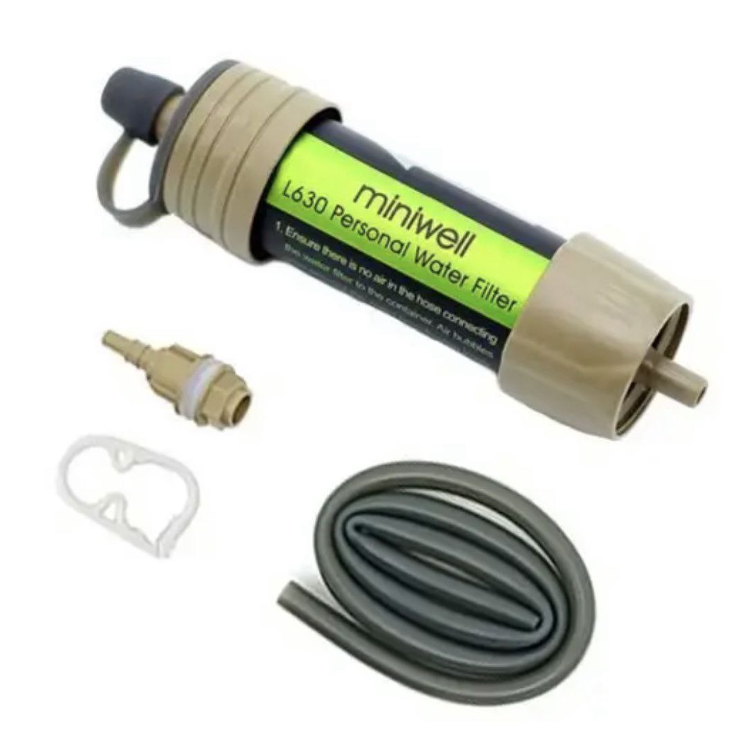 Фильтр для очистки воды в полевых и бытовых условиях: очистка до 99,9% бактерий в воде, длинный ресурс работы — до 2000 литров, штуцер, силиконовый шланг, зажим, имеет стандартную резьбу для накручивания на любую стандартную пластиковую бутылку, что добавляет еще больше возможностей для использования в любых условиях. (Прозрачный блистер).