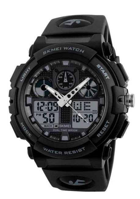 Модель SKMEI 1270 оснащена агрессивным корпусом с выступающими элементами из эластичного полимера, создающими дополнительную защиту от прямого контакта с любыми поверхностями. Браслет, изготовленный из гипоаллергенного полимера, обеспечивает комфортную носку и надежную фиксацию часов на запястье. Электролюминесцентная подсветка на светодиодном дисплее позволяет узнать время даже в полной темноте. Достаточно нажать на кнопку, и приятный зеленый цвет ненадолго осветит элементы циферблата. Характеристики: Механизм часов: кварцевый (Miyota, Япония); Цвет ремешка: черный; Цвет подсветки: зеленый; Материал ремешка: ABS пластик; Материал корпуса: сталь, пластик, прозрачный акрил; Водостойкость: 5 АТМ; Максимальная длина браслета: 25 см; Диаметр циферблата: 53 мм; Высота циферблата: 17 мм; Ширина ремешка: 20 мм; Тип батареи: CR2025 /SR626W.
