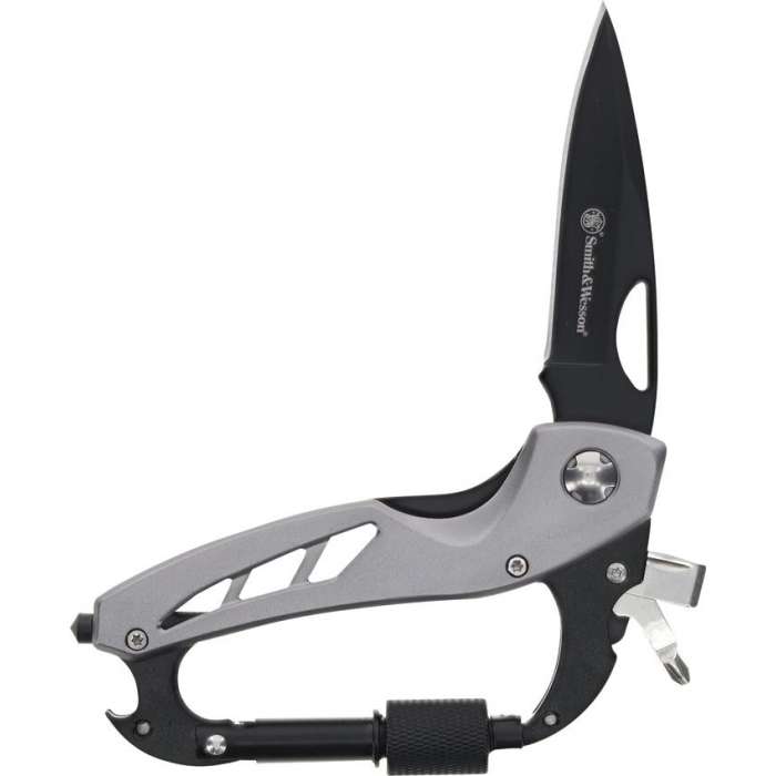 11,43 см в закрытом состоянии. Черное нержавеющее лезвие длиной 7,32 см. Серая алюминиевая рукоятка. Стеклобой. Инструменты включают: запирающийся карабин, открывалка для бутылок, отвертка с плоской головкой, отвертка с крестообразной головкой.