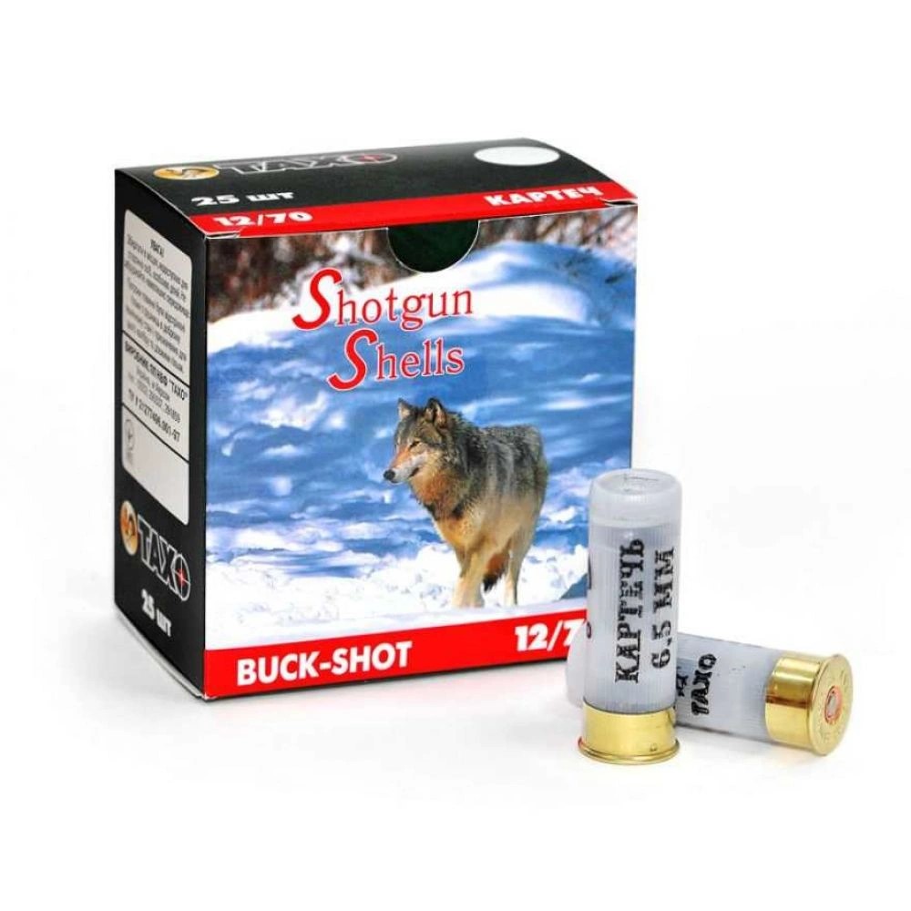 Патрон гладкоствольный калибр 12/70. Номер дроби/Размер картечи - 6.5 мм, Масса снаряда (навеска)- 32.5 г .Патрон с высокой поражающей силой может применяться в ружьях с любым дульным сужением.