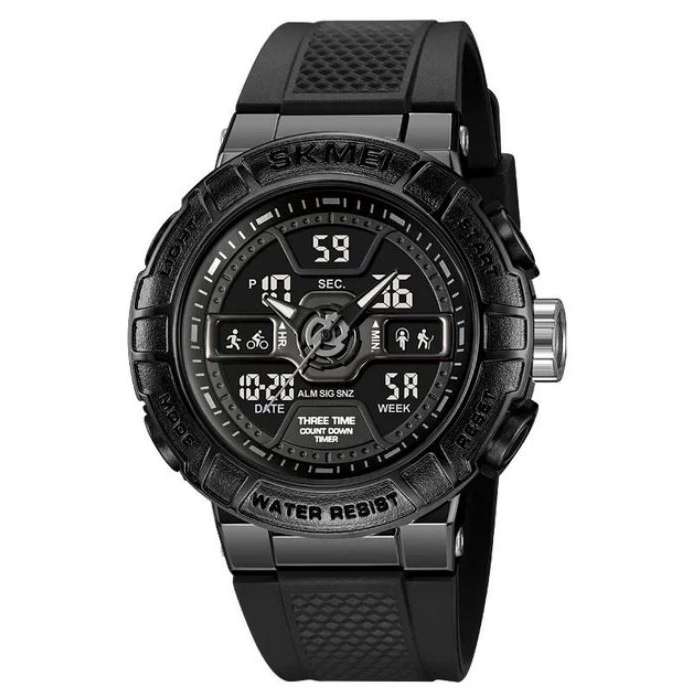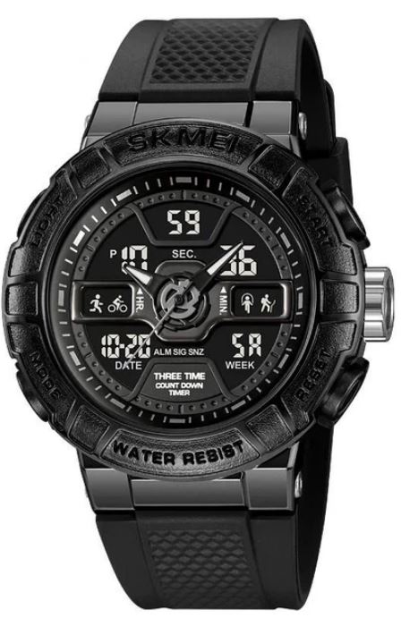 Наручные часы SKMEI 2227BK – это надежный спортивный аксессуар, предназначенный для активных мужчин, которые ценят прочность, функциональность и стиль. Благодаря сочетанию аналоговых и цифровых дисплеев, модель позволяет одновременно отслеживать несколько временных зон и удобно пользоваться дополнительными функциями. Водозащита до 50 метров обеспечивает безопасное использование во время дождя, мытья рук или плавания на небольшой глубине. Прочный корпус и ремешок из полиуретана гарантируют комфорт в повседневной носке и долговечность даже при интенсивной эксплуатации. Стильный черный цвет подчеркивает спортивный характер часов, делая их идеальным выбором для туризма, спорта и повседневной жизни. Основные характеристики: тип механизма: кварцевый с цифровым модулем, материал корпуса: ABS пластик, материал ремешка: полиуретан, стекло: минеральное, водонепроницаемость: 5 ATM (50 м), диаметр корпуса: 52 мм, толщина корпуса: 16 мм, ширина ремешка: 22 мм, дл. функции: двойное время, будильник, таймер, секундомер, подсветка, календарь.