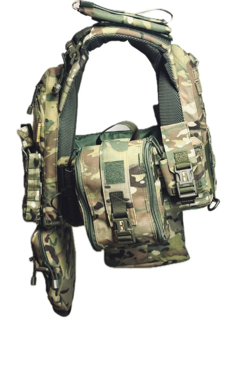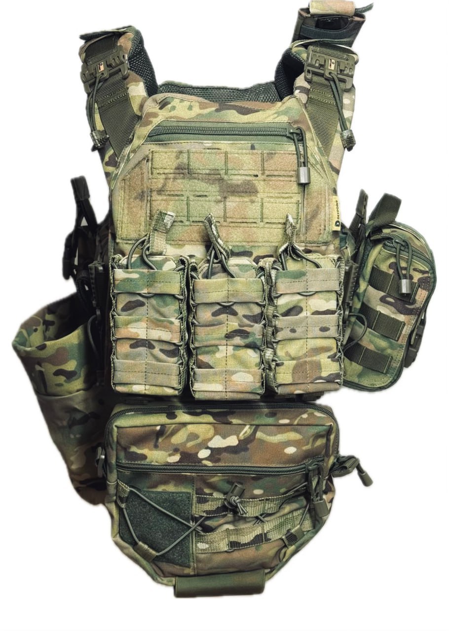 Плитоноска DFP GEN 3 с 9 подсумками, в цвете мультикам. Комплектация: 3 подсумка под АК, 1 подсумок для сброса магазинов, 1 напашник, 2 подсумка под гранату, 1 подсумок под аптечку, 1 подсумок под турникет. Материал: Cordura 1000, Размер: М-2ХЛ (регулируется на охват 95-135 см).Особенности: Быстросъемная система фастексов для плеч и боков с обеих сторон, обеспечивающая удобство и скорость снятия в экстренных ситуациях. Прочная ручка эвакуации, способная выдержать нагрузку до 100 кг, обеспечивает надежность и безопасность во время экстренных ситуаций. Идеально подходит для быстрой и эффективной эвакуации. Карманы для мягкой баллистической защиты, расположенные в боковых секциях, обеспечивают дополнительный уровень безопасности и защиты. 9 Подсумков. Система крепления MOLLE. Velcro на впереди и сзади плитоноски для идентификаторов.