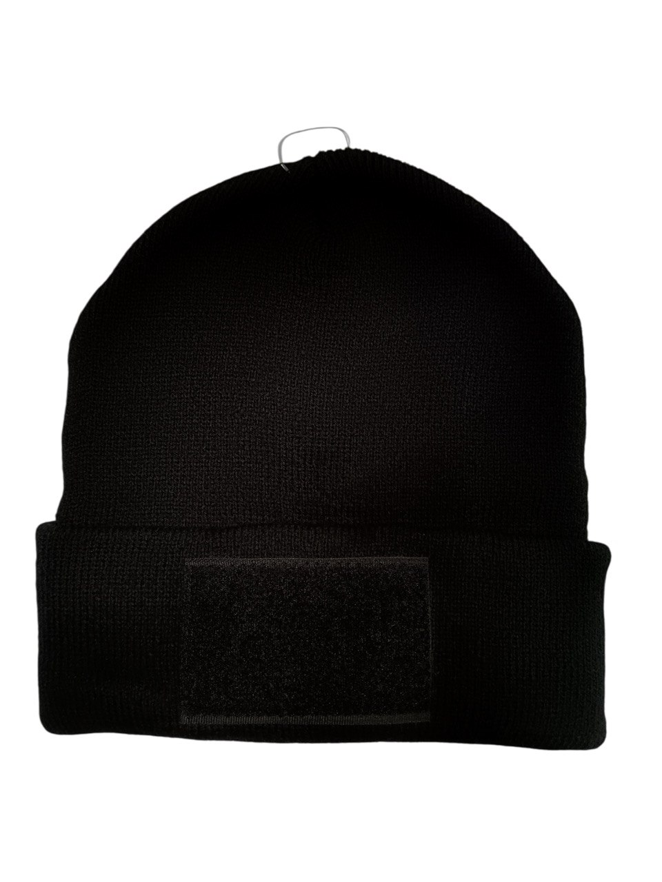 Шапка в'язана з відворотом, з пришитою липучкою. Липучка розмір 4*8 см., чорного кольору.Захистить від морозу та вітру. Матеріал: Акрил 100%